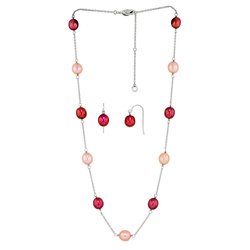 Get a complete look with this lustrous Honora tonal red cultured freshwater pearl necklace and earring set. Red toned pearls alternate on a silver chain matched by red earrings creating an elegant pearl set that will never go out of style.- Necklace and earrings are crafted of fine quality 925 sterling silver for a lifetime of wear- Pearls measure from 7.5mm to 8mm each- Necklace measures 17" long- Fish hook backings on earrings for pierced ears- Part of the Honora collection- Day's lifetime warranty against defects in materials and workmanship- Free cleaning and inspection at Day's for life of this Honora red pearl necklace and earring set