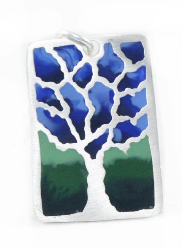 Handcrafted Kevin N Anna Large Green and Blue Epoxy Tree of Life Solid Silver Rectangle Charm Necklace on 925 Sterling Silver Chain - Comes Gift Boxed Review