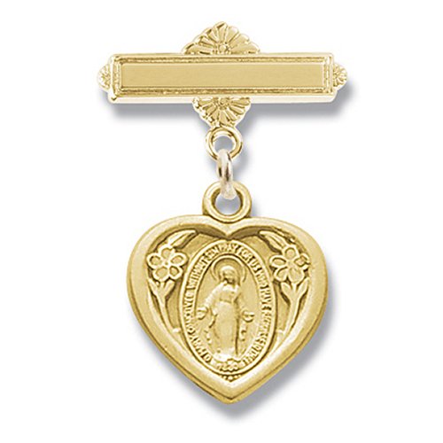 Gold over Sterling Bar Pin with Small Miraculous Heart-Gift Boxed Feature