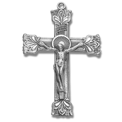 Sterling Silver Large Fancy Rosary Crucifix.24" Chain Gift Boxed Feature