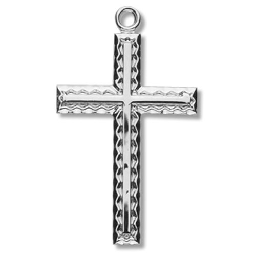 Sterling Silver Medium Fancy Etched Cross with Inlay - 18" Chain -Gift Boxed Review