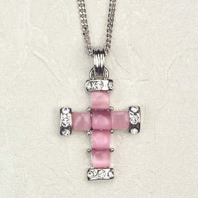 18" Pink Pearl Cross Boxed Jewelry Medal Pendant Charm Christian Catholic Review