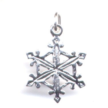 Our graceful Snowflake Charm is double sided, finely detailed and entirely sterling silver. This crystal creation measures 3/4" x 5/8" and comes in a cotton filled gift box.