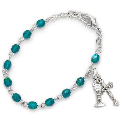 3mm May Emerald Birthstone Rosary Beads First Communion Bracelet with Chalice and Crucifix Charm Christian Jewelry Religious Bracelets Gift Boxed Review